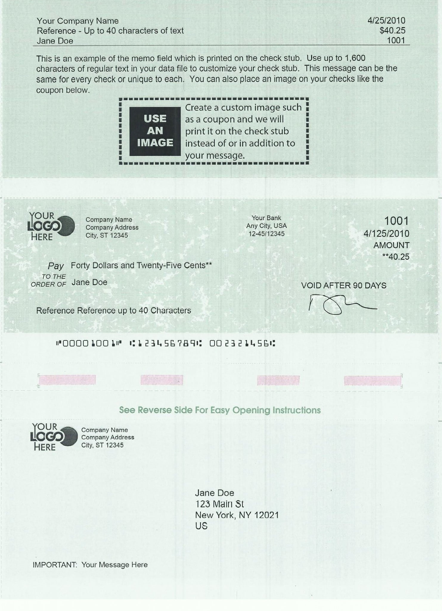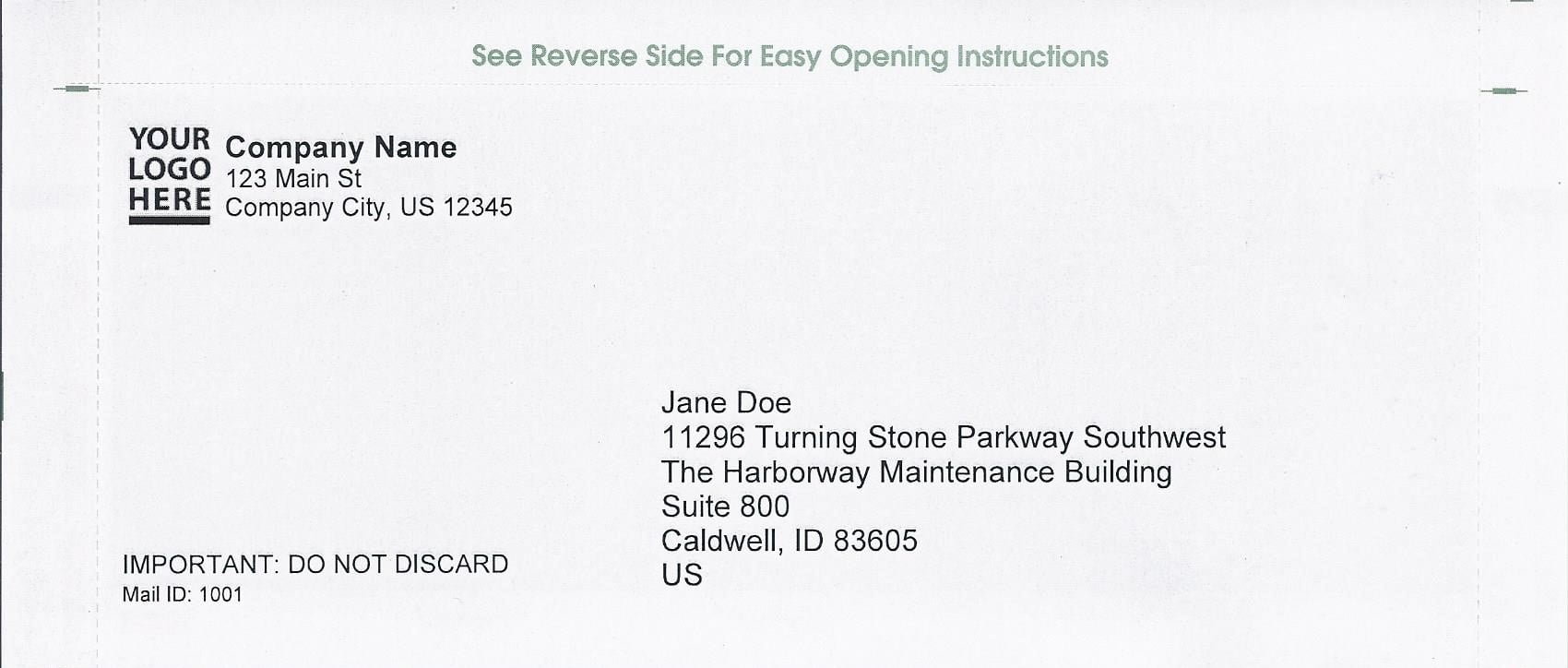 Pressure seal forms are becoming more and more popular and with good reason. With a check in an envelope you are restricted to what can be seen through the envelope window. Not so with pressure seal checks. We can customize the exterior of your forms with your company logo, corporate slogan, website and more. Since the addresses are printed directly on the forms you eliminate the need for the window envelope avoiding any potential delivery issued caused by blurred addresses. Pressure seal documents also offer a more profession look and are often viewed as more important by the recipient than envelope mailings. And with the ability to customize the envelope you can let them know that it is important and not to discard it.